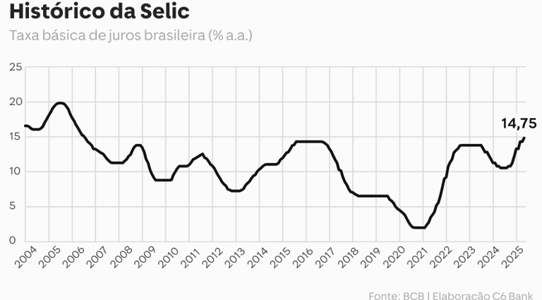 O histórico da Selic de 2004 a 2025 e o que ele revela sobre a economia brasileira;